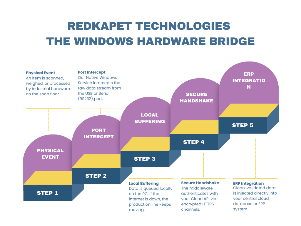Your cloud ERP is powerful, but it cannot talk to your physical hardware. Industrial scales, high-speed scanners, and manufacturing machinery speak legacy protocols (Serial/COM/USB) that web browsers simply cannot access. This forces staff to manually type hardware readings into the computer, creating a bottleneck of human error and slow throughput.